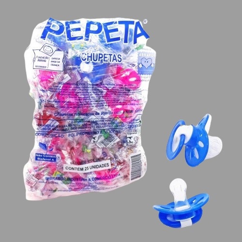 Chupeta Plus Bico Redondo De Silicone Pacote 25 Un – PepetaA Chupeta Tem o Bico Redondo.- Não Contém Bisfenol A- Composição: Polipropileno E Silicone- Recomendada Para Bebês Acima De 6 Meses--> O Ministério Da Saúde Adverte: A Criança Que Mama No Peito Não Necessita De Mamadeira, Bico Ou Chupeta. O Uso De Mamadeira, Bico Ou Chupeta Prejudica O Aleitamento Materno.Informação Importante:Modelos Sortidos Conforme Disponibilidade Do Estoque Atual Sem Opção De Troca De Modelos. Podendo Ir Modelos Diferentes Do Anúncio, Pois Sempre Adquirimos Lotes Novos E Com As Tendencias Mais Atuais- Cor: Colorido (Tons De Cor Pode Variar).- Quantidade: Pacote 25 Unidades. Imagens Meramente Ilustrativas. Todas as Informações Divulgadas são de Responsabilidade Exclusiva do Fabricante/fornecedor.