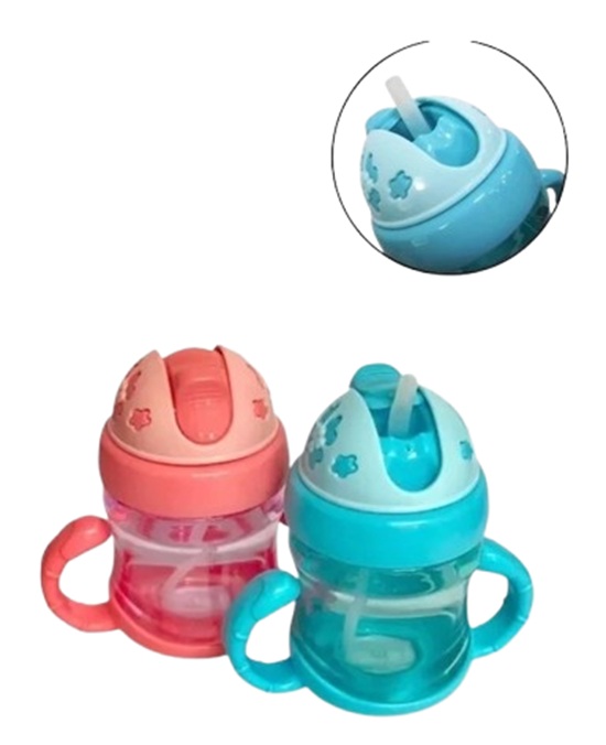 Garrafa De Água Copo Para Bebê Com Tampa E Canudo 1Un - Mix