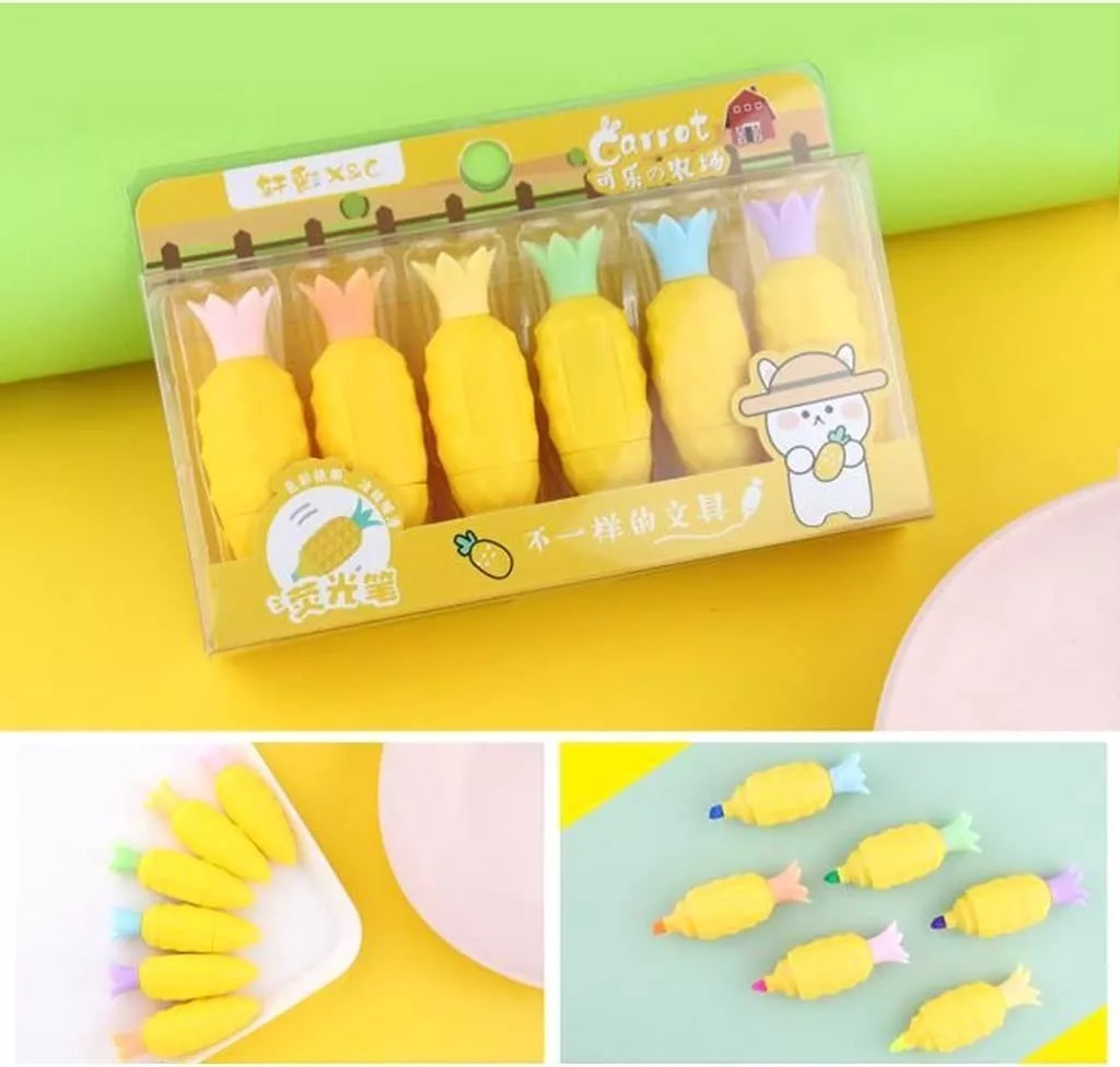 Papelaria Marca Texto Fofo Em Formato De Abacaxi 6Un Carrot